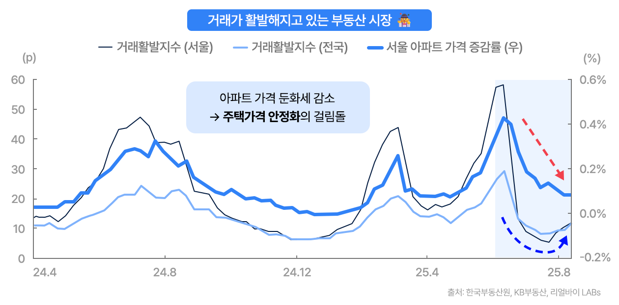 ์ต๊ทผ ์์ธ ์ํํธ ๋งค๋งค๊ฐ๊ฒฉ ์์น๋ฅ ์ด ์ฃผ๊ฐ 0.1% ์๋๋ก ๋ํ๋๊ณ , 6.27 ๋ถ๋์ฐ ๋์ฑ ์ดํ ์ํ ๊ฐ๊ณ๋์ถ ์ฆ๊ฐ ํญ๋ ์ค์ด๋๋ ๋ฑ ์ผ๋ถ ์์ ํ ์ ํธ๊ฐ ๋ํ๋๊ณ ์์ต๋๋ค. ํ์ง๋ง 8์ ์ด๋ถํฐ ์ฃผํ๋งค๋งค ๊ฑฐ๋ ์ฌ๋ฆฌ๊ฐ ๋ค์ ๋ฐ๋ฑํ๋ ๋ฑ ์ฌ์ ํ ์์ฌํ ์ ์๋ ์ํฉ์ ๋๋ค.