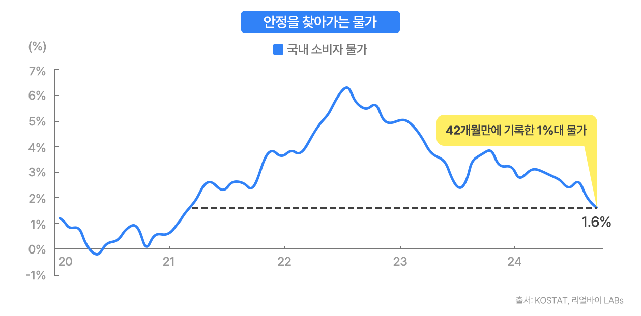 또한, 최근 한국의 물가 상승률이 9월 기준 1.6%로 하락했어요. 2021년 3월 이후 3년 6개월만에 처음으로 1%대로 내려온 건데요, 물가가 안정되어 가고 있다는 신호죠. 그동안 금융통화위원회는 물가 안정을 최우선으로 고려해 왔는데, 이제 금리 인하를 준비할 수 있는 여건이 마련된 것 같아요.